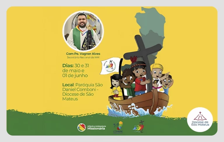 Entre os dias 30 de maio e 1º de junho, acontecerá na Paróquia São Daniel Comboni, em Guriri, o Encontro de Aprofundamento para Assessores da Infância e Adolescência Missionária (IAM) do Regional