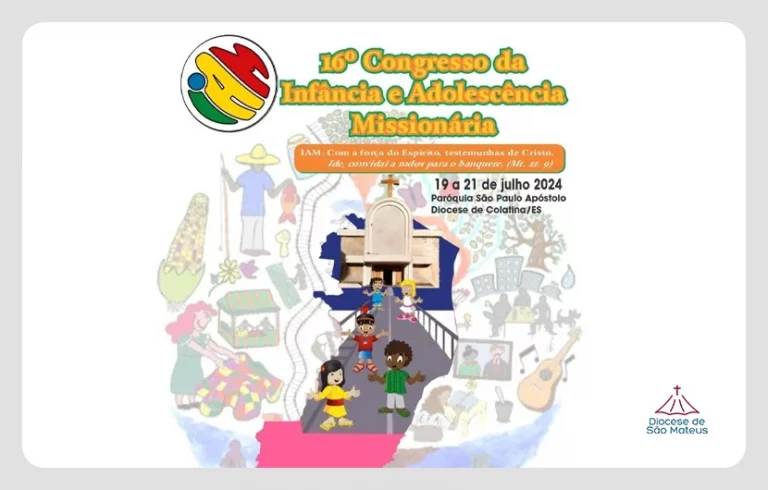 Acontecerá entre os dias 19 a 21 de julho de 2024, na Paróquia São Paulo Apóstolo, Bebedouro, Linhares (ES), o 16º Congresso Estadual da IAM. Participarão do evento assessores adultos e crianças coordenadoras