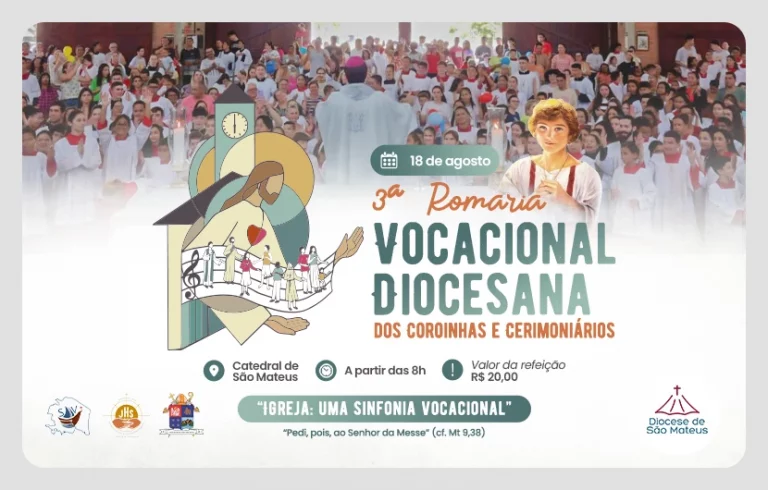 Tema: “Igreja: uma sinfonia vocacional” Lema: “Pedi, pois, ao Senhor da Messe” (cf. Mt 9,38). Data: 18 de agosto Local: Catedral de São Mateus; Horário: a partir das 8h; Valor da refeição: R$ 20,00.