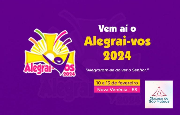 O Alegrai-vos 2024 está chegando! “Alegraram-se ao ver o Senhor.” Data: 10 a 13 de fevereiroNova Venécia – ES Queremos a sua presença neste retiro repleto de alegria, música, adoração e, acima