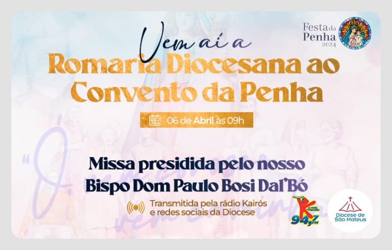 Junte-se a nós na Romaria Diocesana ao Convento da Penha!Venha participar deste momento especial de fé e comunhão. Dia 06 de abril de 2024 Missa presidida pelo nosso Bispo Dom Paulo Bosi