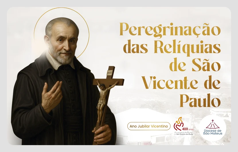 Em comunhão com o Ano Jubilar pelos 400 anos da Congregação da Missão (Vicentinos), nossa Diocese se prepara para acolher com alegria e reverência as relíquias de São Vicente de Paulo, que peregrinam por todo o Brasil!