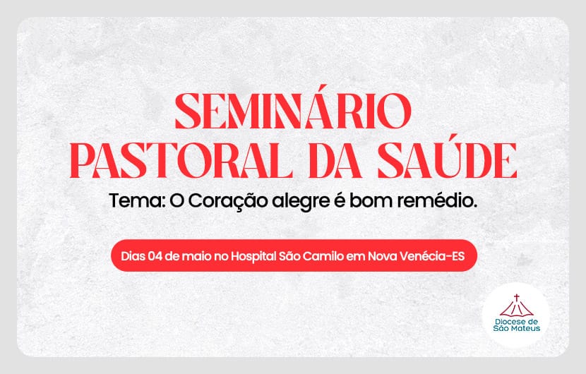 No dia 04 de maio irá acontecer o Seminário da Pastoral da Saúde com o tema: O Coração alegre é bom remédio.