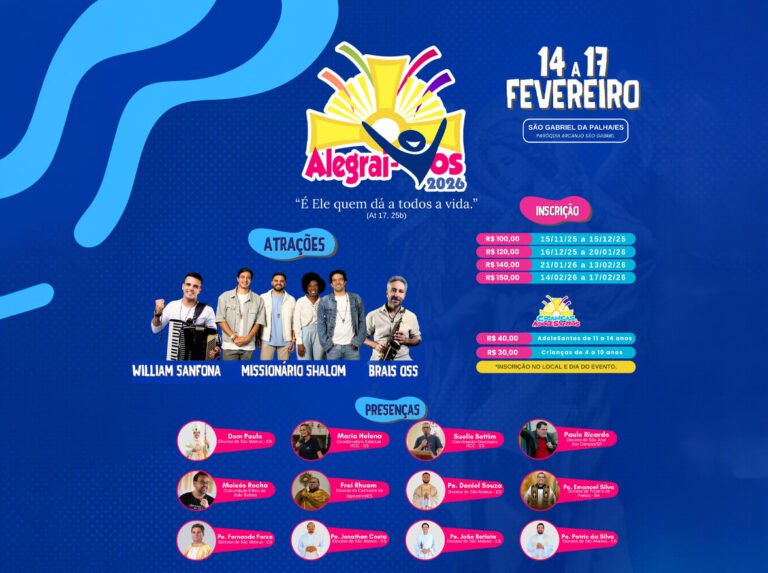 Inspirado pelo tema “É Ele quem dá a todos a vida” (At 17,25b), o Alegrai-vos 2026 convida os participantes a experimentarem dias marcados pela oração, louvor, pregações e profunda experiência com Deus.
