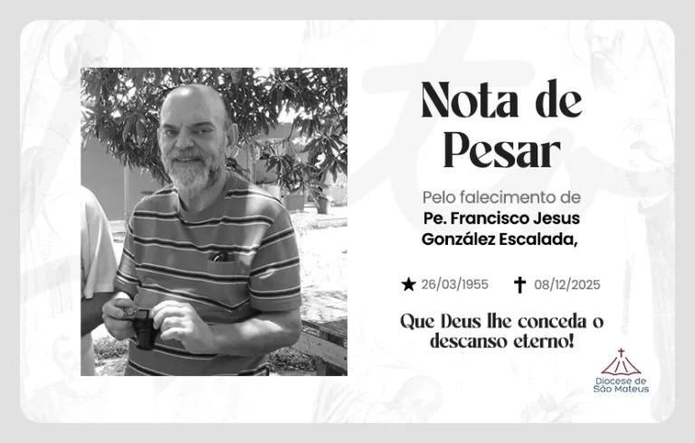 A Diocese de São Mateus agradece a Deus pelo dom da vocação de Pe. Evanderson Medeiros e reza para que seu ministério seja fecundo, alegre e profundamente enraizado na graça daquele que o chamou.