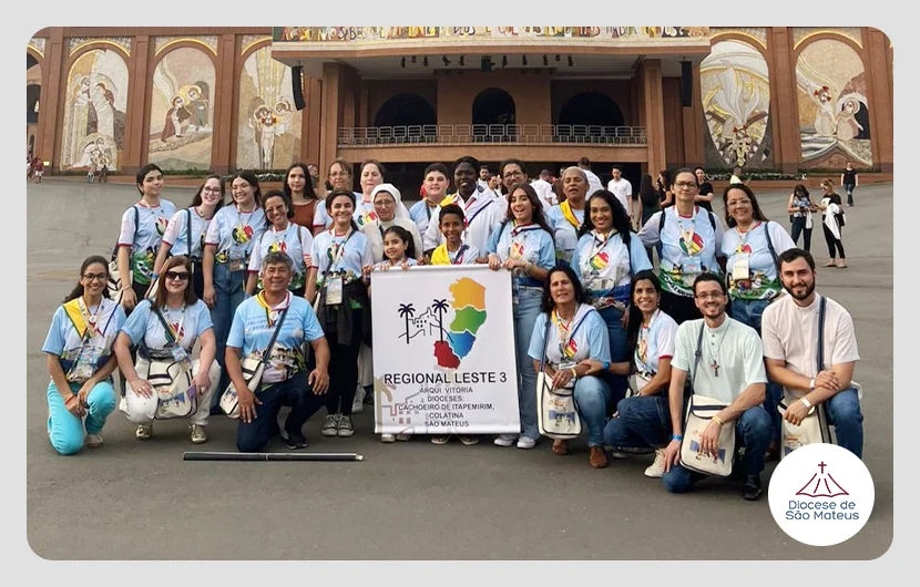 Os 14 representantes da nossa diocese viajaram em Romaria junto com membros das Dioceses de Colatina, Cachoeiro de Itapemirim e Arquidiocese de Vitória, promovendo uma bela expressão de comunhão e unidade missionária. Durante o congresso, os participantes estão vivenciando momentos de oração, partilha e formação, fortalecendo o espírito missionário e o compromisso com a evangelização de crianças e adolescentes.