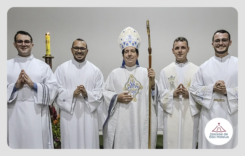 O ponto alto do dia foi a Missa presidida às 16h pelo Bispo Diocesano Dom Paulo Bosi Dal’Bó, na qual foi celebrado o Rito de Admissão como Candidatos às Ordens Sacras dos seminaristas Kaylan Bettim Ton e Mateus Venancio Pelanda, e a Instituição do Ministério de Leitor do seminarista Enilson Souza Silva Júnior. O momento foi vivido com profunda emoção e participação dos fiéis, reforçando a dimensão vocacional da celebração.