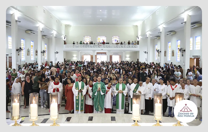 O Dia Nacional da Juventude (DNJ) foi celebrado com grande fervor e entusiasmo no último 19 de outubro, reunindo jovens de toda a Forania Baiana na Paróquia Nossa Senhora Aparecida, em Montanha/ES. A celebração deste ano teve como tema “Juventude e Ecologia Integral”, e o lema “Jovens, guardiões da Criação”, inspirados na passagem bíblica “Deus viu que tudo era muito bom” (Gn 1,31).