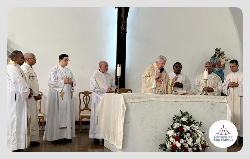 A Celebração Eucarística aconteceu na capela do Centro Universitário Salesiano (UniSales), e foi presidida pelo Padre Hugo Scheer, professor e diretor do Instituto Interdiocesano de Filosofia e Teologia (IFTAV). Concelebraram o Padre Geraldo Adair da Silva, diretor institucional do UniSales, e demais padres formadores.