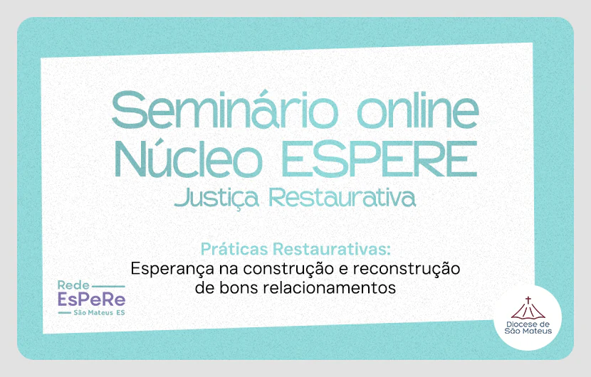 No último sábado, 28 de junho de 2025, o Núcleo ESPERE/Justiça Restaurativa da Diocese de São Mateus promoveu o seminário “Práticas Restaurativas: esperança na construção e reconstrução de bons relacionamentos”, com transmissão ao vivo pelo YouTube de nossa Diocese.