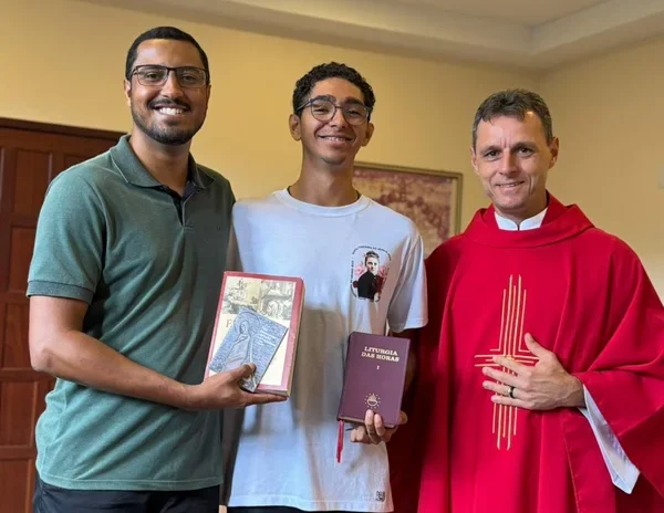 Durante a celebração, o reitor acolheu com alegria os novos seminaristas da Etapa do Discipulado (Filosofia): Daniel Kirmse, Murilo da Silva Melanes Gonçalves e Rafael Campos Silva, que iniciam o 1º ano de Filosofia. Na ocasião, eles receberam símbolos próprios da etapa formativa: a Liturgia das Horas, que remete à vida de oração, e o livro de Filosofia, sinal do estudo e da formação intelectual.
