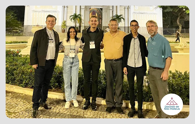 Neste avento, a Diocese de São Mateus está representada através dos seguintes participantes: Pe. Deucy Corrêa, Pe. Belmiro Ohnezorge, Pe. Aldir Roque Loss, Mara Vieira Andradeda – Câmara Eclesiástica e os seminaristas do 4° ano de Teologia: Evanderson Medeiros e Fabrício Soares Pardim.